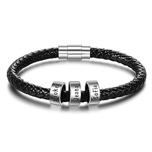 Ashleymade Herrenarmband Silber Schwarz Geschenk zum Vatertag Personalisierte Armbänder mit Namen Geburtstagsgeschenk für den Vater Edelstahlarmband Weihnachtsschmuck 22cm
