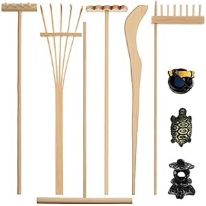 Qualitätsmaterial: Diese Zen-Gartengeräte bestehen aus hochwertigem Bambus, mit dem Sie in Form von Linien, Wellen, Blumen, Kreisen oder allem, was Sie sich vorstellen können, harken können. Diese 3 winzigen Figuren verleihen Ihrem Zen-Garten Spaß und machen ihn voller Vitalität. Diese Mini-Rechen und Figuren passen in Ihren Zen-Garten