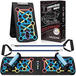 FitnessgeräteBody & Mind® Push-Up Liegestütz-Brett; Faltbares Multifunktions Elite Rack Fitness-Board für Ganzkörper-Training & Effektive Liegestützen; Liegestütz-Griffe mit Gratis Trainingsbänder & E-Book