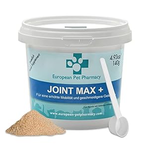 HaustierzubehörEuropean Pet Pharmacy Joint Max+ Joint Care für Hunde — Nahrungsergänzungsmittel Hund & Katze – Nährstoffreiche Formel mit Grünlippmuschel Hund – Jedes Alter – 140 g Glucosamin Chondroitin Pulver
