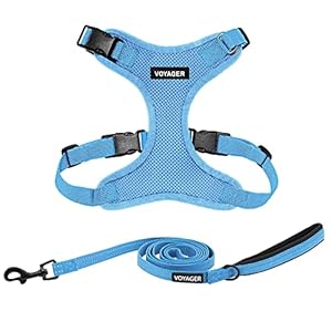Voyager Step-in Lock Dog Harness w Reflective Dog Leash Combo Set with Neoprene Handle 5ft – Supports Small, Medium and Large Breed Puppies/Cats by Best Pet Supplies – Baby Blue, S