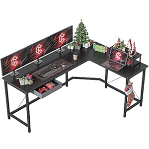 CubiCubi Moderner L-förmiger Computertisch, 170 x 120 cm PC-Tisch, Stabiler Schreibtisch für Gaming, Eckschreibtisch mit Monitorständer und Schublade, ecktisch groß bürotisch, Schwarz