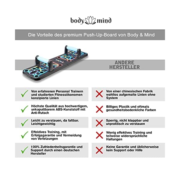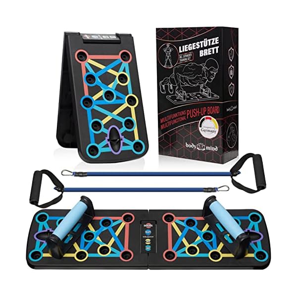 Body & Mind® Push-Up Liegestütz-Brett; Faltbares Multifunktions Elite Rack Fitness-Board für Ganzkörper-Training & Effektive Liegestützen; Liegestütz-Griffe mit Gratis Trainingsbänder & E-Book