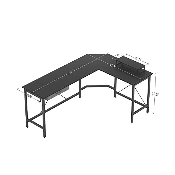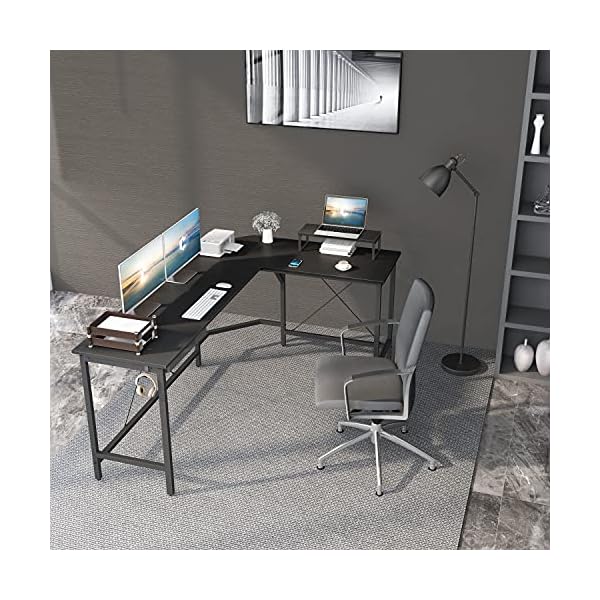 【Geräumig und robust】170 cm x 120 cm x 75 cm. Der breite Desktop-Platz kann verschiedene Verwendungsformen erfüllen, und die L-Form kann gut an die Umgebung in der Ecke angepasst werden, die starke Rahmenstruktur macht es stabil.