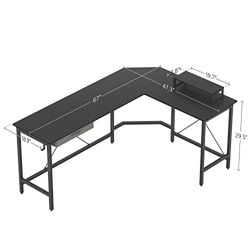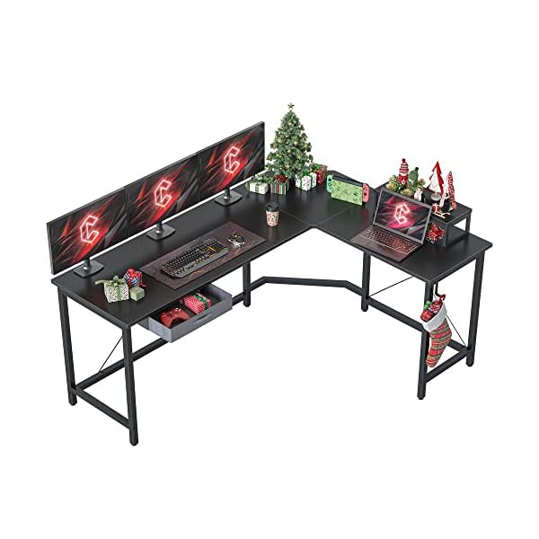 CubiCubi Moderner L-förmiger Computertisch, 170 x 120 cm PC-Tisch, Stabiler Schreibtisch für Gaming, Eckschreibtisch mit Monitorständer und Schublade, ecktisch groß bürotisch, Schwarz