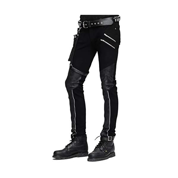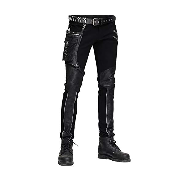 Devil Fashion Punk Cargohose gestreift Mosaik Hose mit Steampunk Beintasche für Herren, schwarz