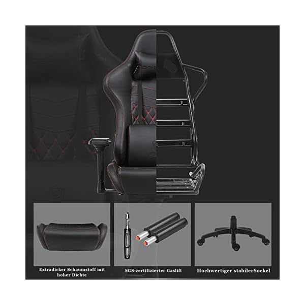 BREITE ANWENDUNGEN: Der Dowinx Spielestuhl kann als Bürostuhl, Computerstuhl, Rennstuhl verwendet werden. Er ist für Sie geeignet, um Computerspiele zu spielen, fernzusehen, die Arbeit zu erledigen und ein Nickerchen zu machen. Er wird Modernität und Eleganz in Ihren Raum bringen.