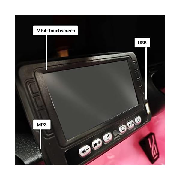 Batterie: 12 V, optional: Fernbedienung mit 2,4 GHz, Sitz aus weichem und komfortablem Leder, Touchscreen, MP4, Motoren, 2 x 35 Watt, Batterie 12 Volt, Maße des Fahrzeugs: 108 x 66 x 54 cm, Griff für einfachen Transport MP3 USB-Player. Lieferumfang: 11 x 59 x 37 cm, 18 kg