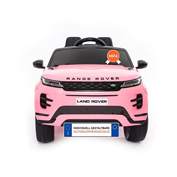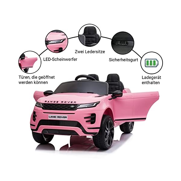 Elektroauto für Kinder Range Rover Evoque mit Tributplatte | kinderauto elektrisch mit 12-Volt-Batterie, MP4-Touchscreen-Monitor, Kindersitz aus Leder, offizielles Lizenzprodukt (Rosa)