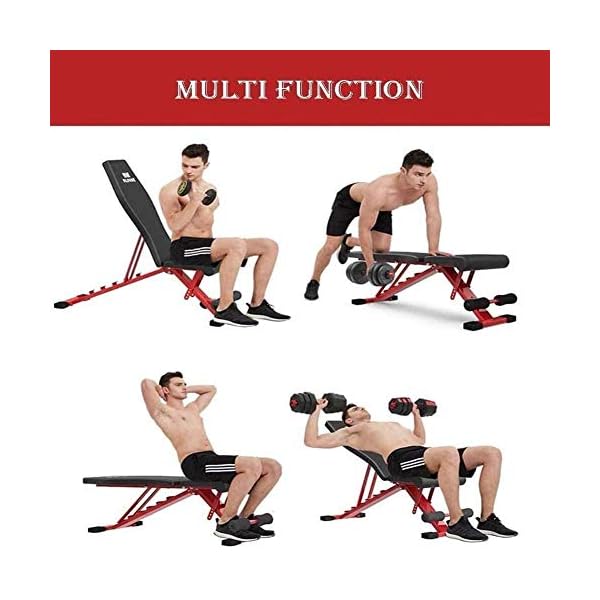 Faltbare Bank: Die Struktur des Hauptrahmens ermöglicht es, diese Multi-Trainingsbank in einer kleineren Größe zu falten, die in das Auto, den Kleiderschrank, neben der Wand oder unter dem Bett passt, um Platz zu sparen. Lagerung und leicht zu transportieren; nach dem Zusammenfalten ist kein Zusammenbau erforderlich.