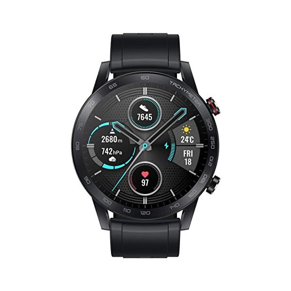 HONOR MagicWatch 2 46 mm Smart Watch, Fitness-Aktivitätstracker mit Herzfrequenz- und Stressmonitor, Übungsmodi, Lauf-App und eingebautem Lautsprecher und Mikrofon, Schwarz/Anthrazit