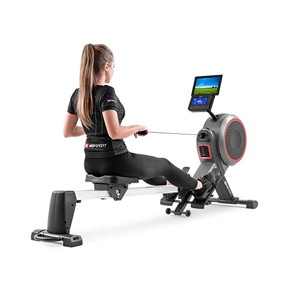 Hop-Sport HS-100AR Luft-Rudergerät für zuhause inkl. Bodenschutzmatte – Rudermaschine klappbar mit Luft- & Magnetwiderstand, LCD-Display, 12 Programmen, Wettkampfmodus und WATT-Funktion