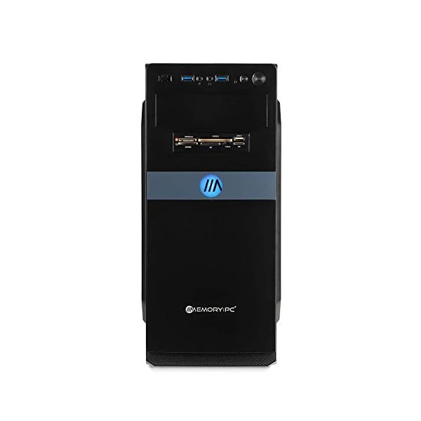 - Gehäuse: MemoryPC Midi-Tower Black mit FrontUSB 3.0 & -Audio und eingebauten Cardreader – 200 x 410 x 415mm (W x H x T)