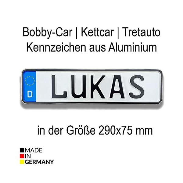 nach ihren Wünschen geprägtes Kettcar- Tretauto-Kennzeichen, es handelt sich um keinen Foliendruck! Der Name wird geprägt für eine TOP-Optik!