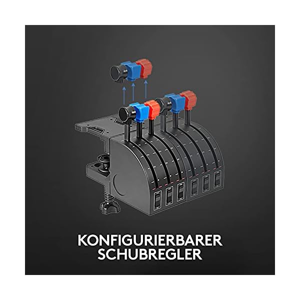 Dreifacher Schubregler: Das Logitech Yoke System enthält einen Flight Throttle Quadrant – alle Hebel sind abnehmbar und frei programmierbar