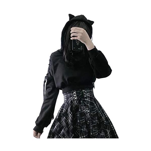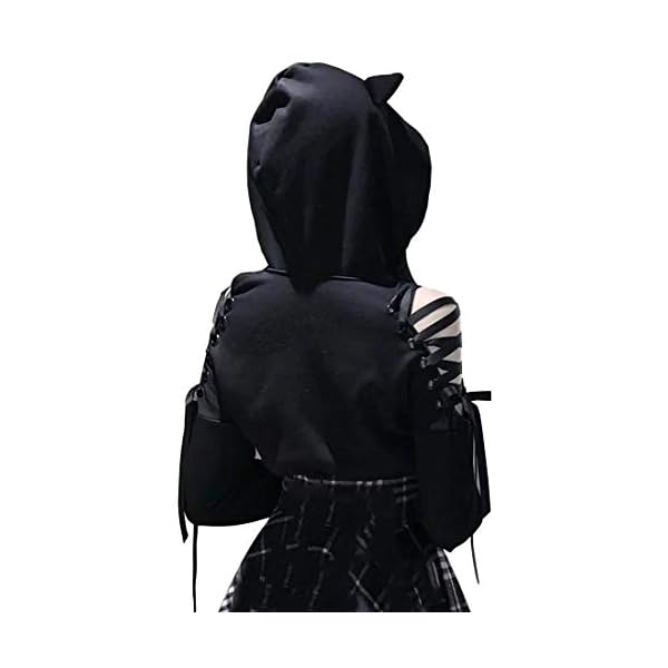 PANOZON Damen Hoodie Bauchfrei Pullover mit Katzenohren Hollow Out Gothic Sweatshirt