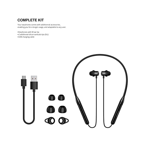 LIEFERUMFANG – Kabellose Kopfhörer Schwarz mit Bluetooth 5.0 und funktionale Nackenband