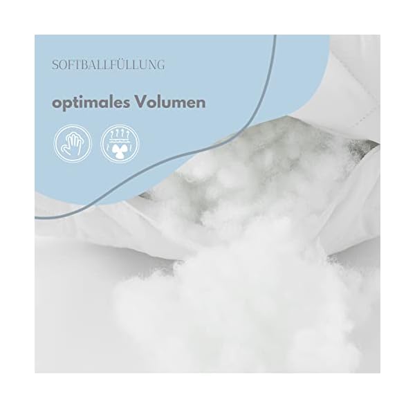 FORMSTABIL : weiche Kissen Füllung (silikonisierten Polyester Faserbällchen) sorgt für ein anschmiegsames und kuscheliges Gefühl. Das Kissen für Seitenschläfer ohne Perlenfüllung ist getestet von Vergleich.org mit dem Ergebnis: Preis-Leistungs-Sieger.