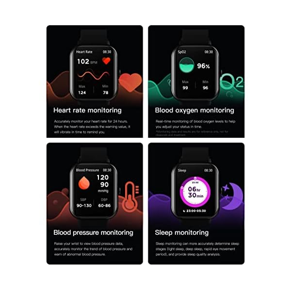 ➤【Umfassende Gesundheitsuhr】Behalten Sie Ihre Herzfrequenz während des Tages und während des Trainings sowie Ihren Schlaf während der Nacht im Auge und erhalten Sie tiefere Einblicke in Ihre Gesundheit. Darüber hinaus tragen die Verfolgung des Blutdruck, Schritt, Kalorien und andere Gesundheitsfunktionen dazu bei, ein umfassendes Gesundheitsmanagement von Ihrem Handgelenk aus zu erreichen.