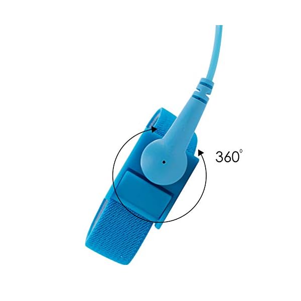 Das verstellbare Armband mit leitfähigem 360-Grad-Kontakt wird am Handgelenk getragen und verfügt komplett über Hautkontakt. Es empfiehlt sich, dieses Armband gegen statische Aufladung bei Reparaturen elektronischer Geräte, die empfindlich gegenüber statischer Entladung sind, zu tragen.