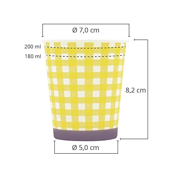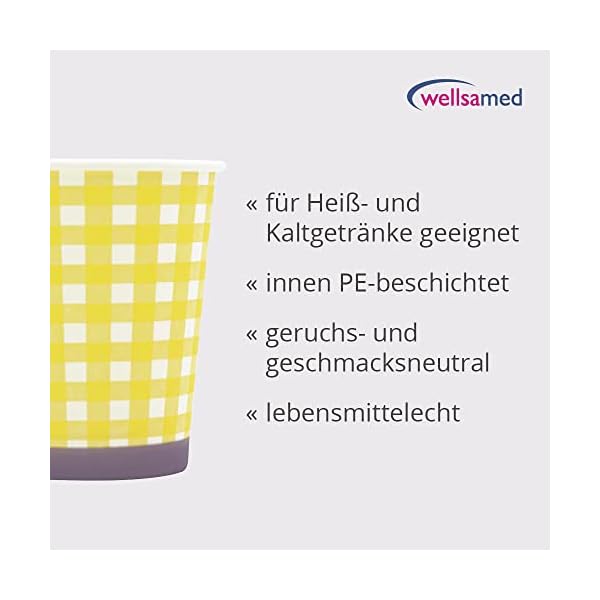 Wellsamed WELLSACUP 1000 Stück Pappbecher 180 ml Gelb Kariert, geeignet für Heiß- und Kaltgetränke, Coffee to go, Picknick, Grillen, Party